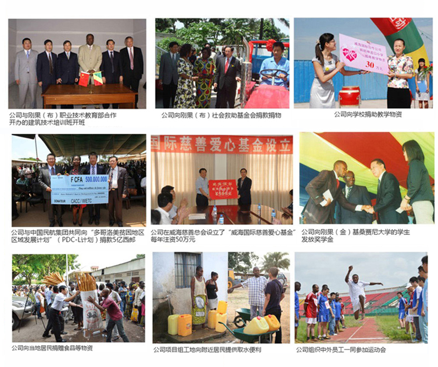 公司積極參加各種公益慈善活動。在國內(nèi),公司通過捐款捐物、設(shè)立獎學(xué)金以及捐建設(shè)施等方式長期資助神道口小學(xué)及中學(xué)、山東建筑大學(xué)、威海兒童福利院,支持社區(qū)發(fā)展;在威海市慈善總會設(shè)立“威海國際愛心基金”,每年至少捐資50萬元,是市慈善總會設(shè)立的所有冠名基金中最大的一個。在國外,向各類社會救助機(jī)構(gòu)、學(xué)校、國家運(yùn)動隊等提供長期資助;發(fā)生自然災(zāi)害或社會危難時,公司竭盡所能,參與救助;在國外利用施工力量,為當(dāng)?shù)鼐用裥迯?fù)道路,提供水、電便利,為政府捐建公共設(shè)施,等等。作為公司的一項制度,境外各屬地公司每年都要提出符合當(dāng)?shù)貙嶋H的履行社會責(zé)任計劃清單,確定不同主題的關(guān)愛捐獻(xiàn)活動。目前,公司在慈善公益方面的投入已達(dá)數(shù)千萬元人民幣。