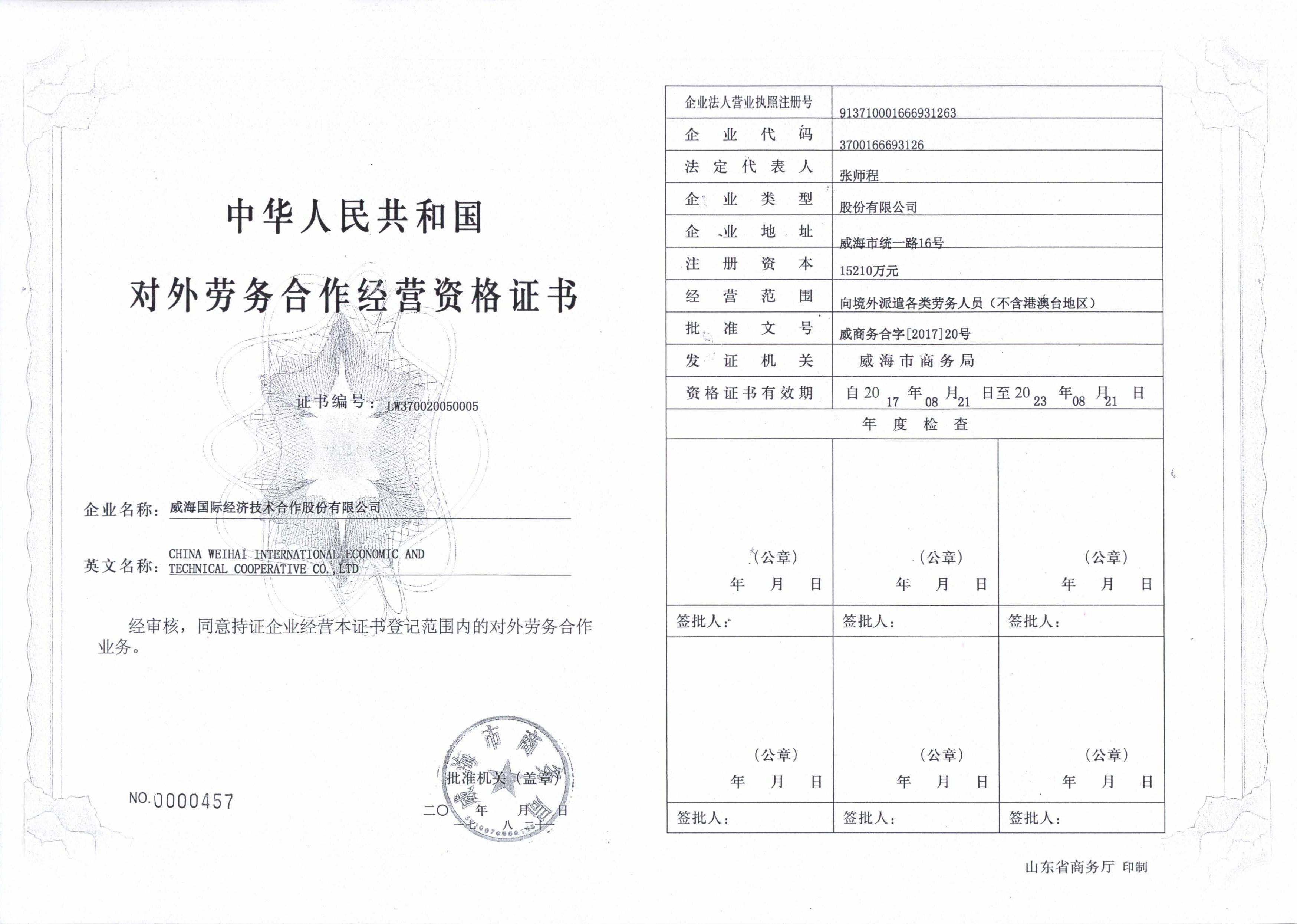 Tous droits réservés.:Weihai International Economic & Technical Cooperative Co.,Ltd(c)N°16, rue de Tongyi, ville de Weihai, Chine 魯ICP備12002982號-3 Tél:86-0631-5233588 Fax:86-0631-5224345 魯公網(wǎng)安備 37100202000269號 Soutien technique:L'audition de logiciel