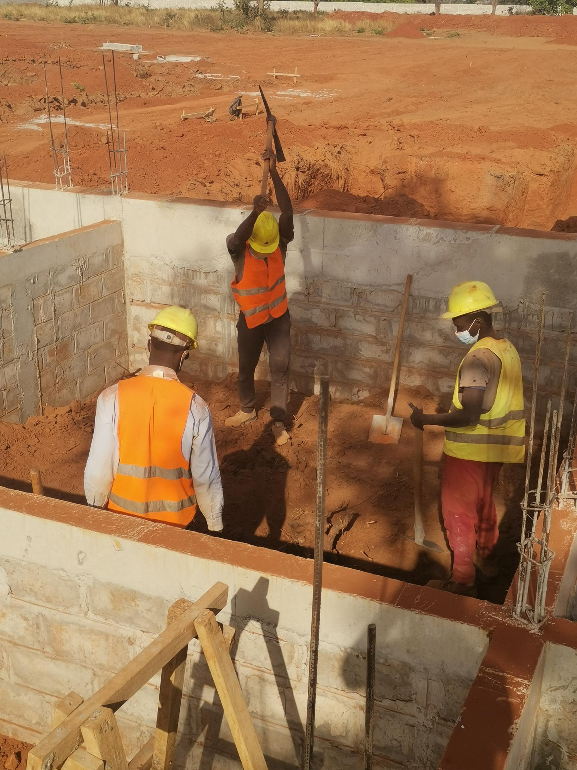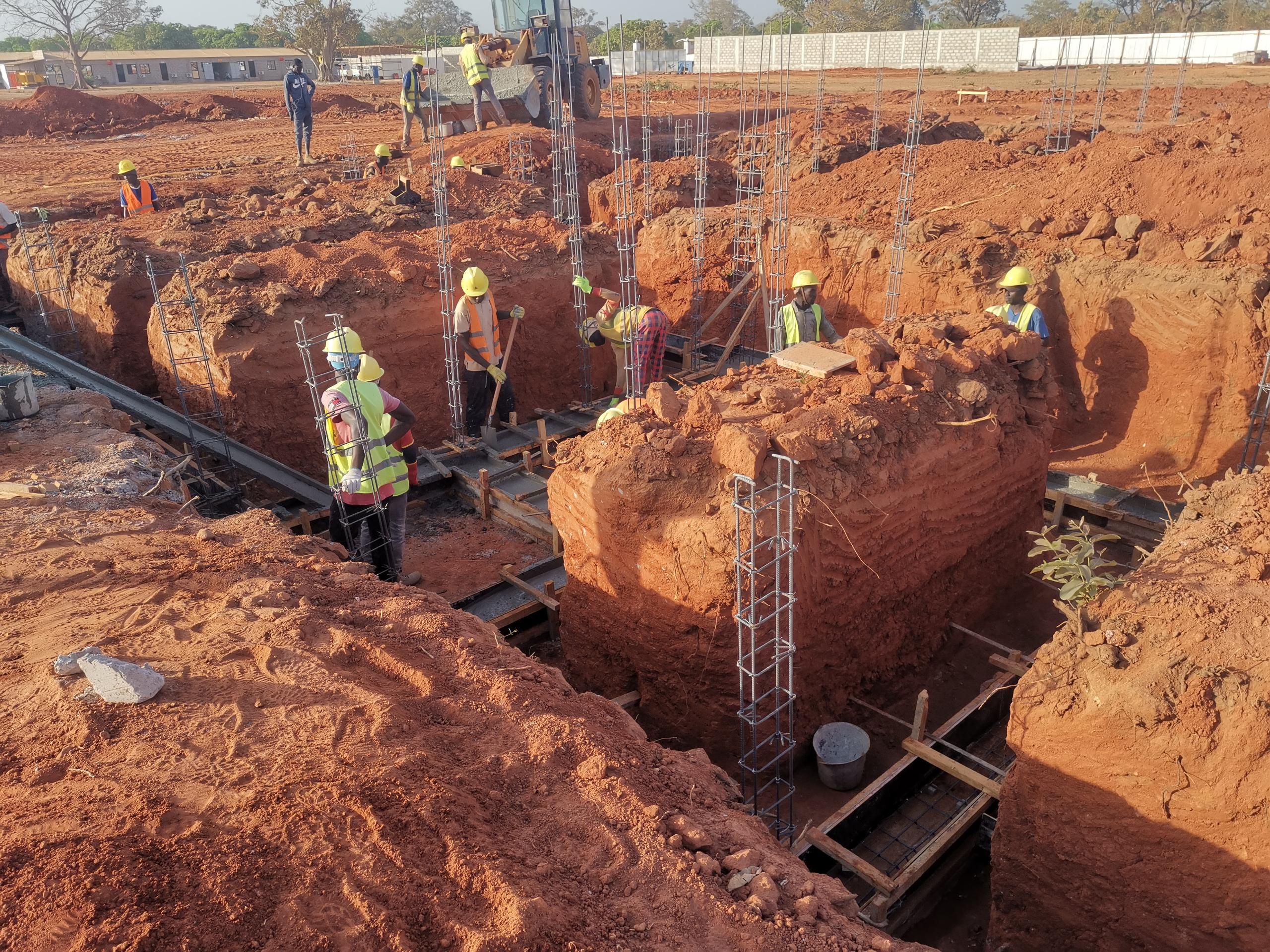 Remblayage en terre de la fondation en cours dans Construction en béton de la poutre de la fondation en