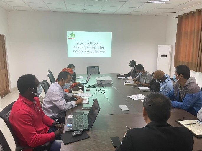 Les participants à la réunion se sont présentés un par un et ont regardé conjointement la vidéo de propagande de notre entreprise et PPT de démonstration du projet. Par la suite, QI Pan, le Vice-directeur général a présenté l'historique du développement des affaires internationales des travaux et la situation du développement des affaires dans la région de l'Afrique de l'Ouest de notre entreprise, et a encouragé les nouveaux employés : Après avoir joint à WIETC, tout le monde appartient à une famille, lorsque les problèmes sont rencontrés dans le travail et la vie, il faudrait communiquer et échanger avec les collègues à tout moment, trouver conjointement une solution; j'espère que tout le monde pourra avancer ensemble main à main, pour créer un meilleur avenir pour notre entreprise. Diagne, l'ingénieur local, a déclaré : "J'ai joint à l'entreprise depuis plus d'un an, je comprends que WIETC est une entreprise efficace, ouverte, axée sur la qualité et la réputation dans mon travail. Pour le travail chez WIETC, je peux déployer mon expertise, et je me suis grandement amélioré aussi''. Les quatre nouveaux employés ont été profondément touchés par l'ambiance franche et ouverte du symposium, ils ont lancé les interactions fréquentes et les échanges approfondis avec les anciens employés sur les questions qui les préoccupaient, ils ont tous exprimé qu'ils se consacreraient à leur travail avec un plein enthousiasme.
