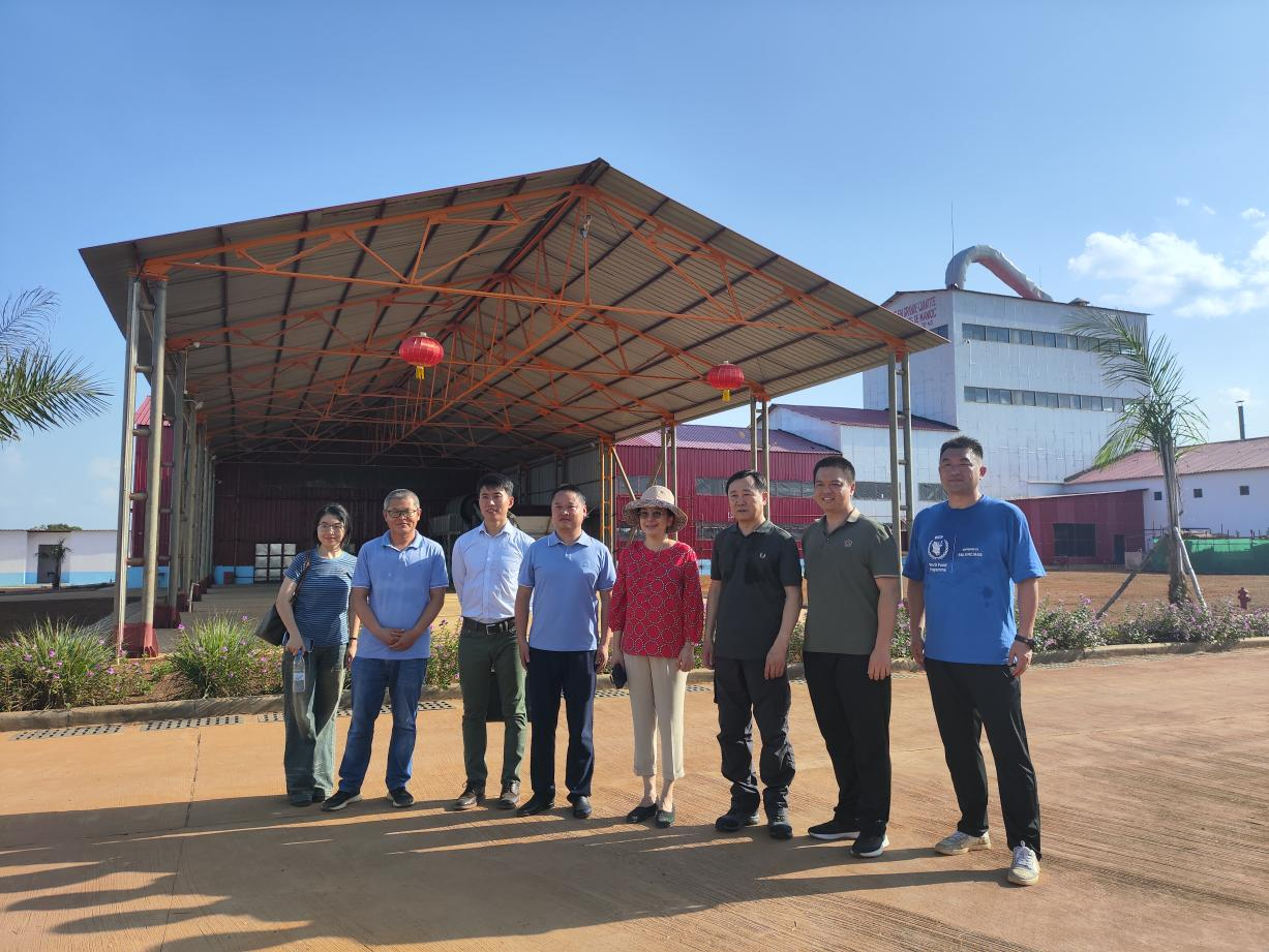 L'Ambassadeur Li Yan (quatrième à partir de la droite) et sa délégation ont inspecté le Parc industriel de plantation et de transformation du manioc de l'Entreprise.