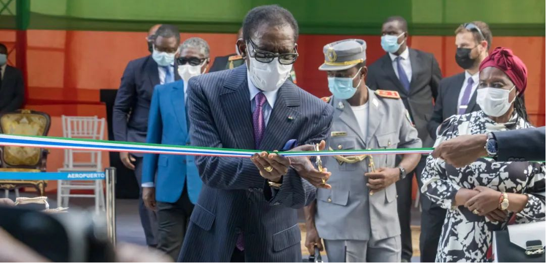 Le président Obiang coupe le ruban pour l'ouverture de la nouvelle aérogare