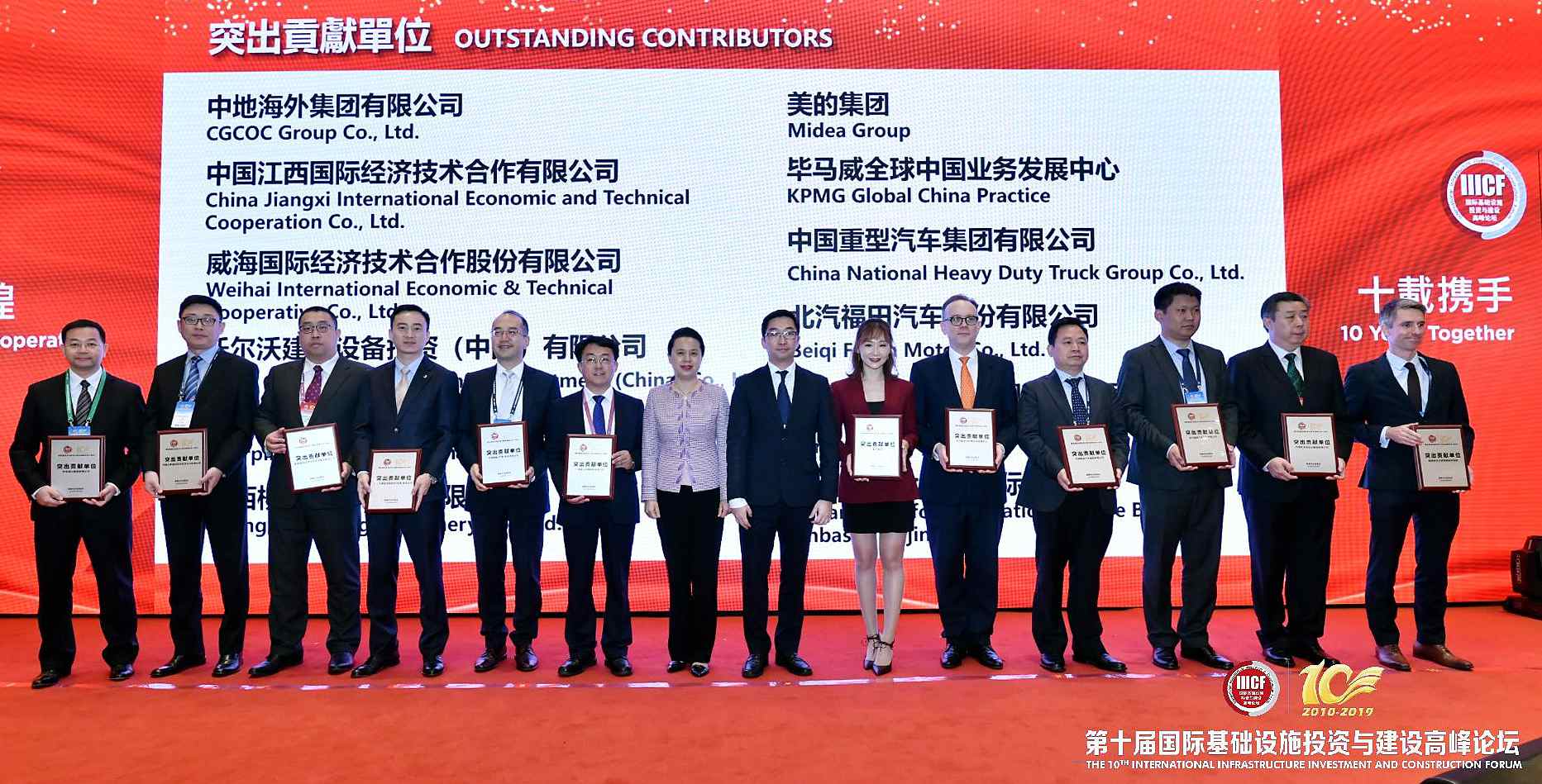 今年是國際基礎(chǔ)設(shè)施投資與建設(shè)高峰論壇舉辦十周年。為感謝十年來為國際基建論壇創(chuàng)立、發(fā)展和壯大作出積極貢獻(xiàn)的國際、國內(nèi)機(jī)構(gòu),高峰論壇組委會(huì)向48家單位頒發(fā)了十周年突出貢獻(xiàn)獎(jiǎng),公司獲此殊榮。