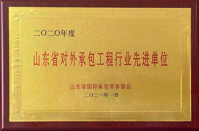 山東省對外承包工程行業(yè)先進單位是由山東省國際承包勞務商會評選,在全省范圍內保持良好發(fā)展態(tài)勢、各項指標處于前列的企業(yè)。2020年,面對新冠疫情造成的極為不利的市場形勢和經營環(huán)境,公司全體員工勠力同心,危中尋機,采取各種有效措施,穩(wěn)市場、穩(wěn)經營、穩(wěn)隊伍,努力確保了公司各項業(yè)務的穩(wěn)定發(fā)展,繼續(xù)成為山東省對外承包工程行業(yè)發(fā)展和強省建設的排頭兵。2021年,我們將再接再厲,奮發(fā)進取,攻堅克難,再創(chuàng)佳績。
